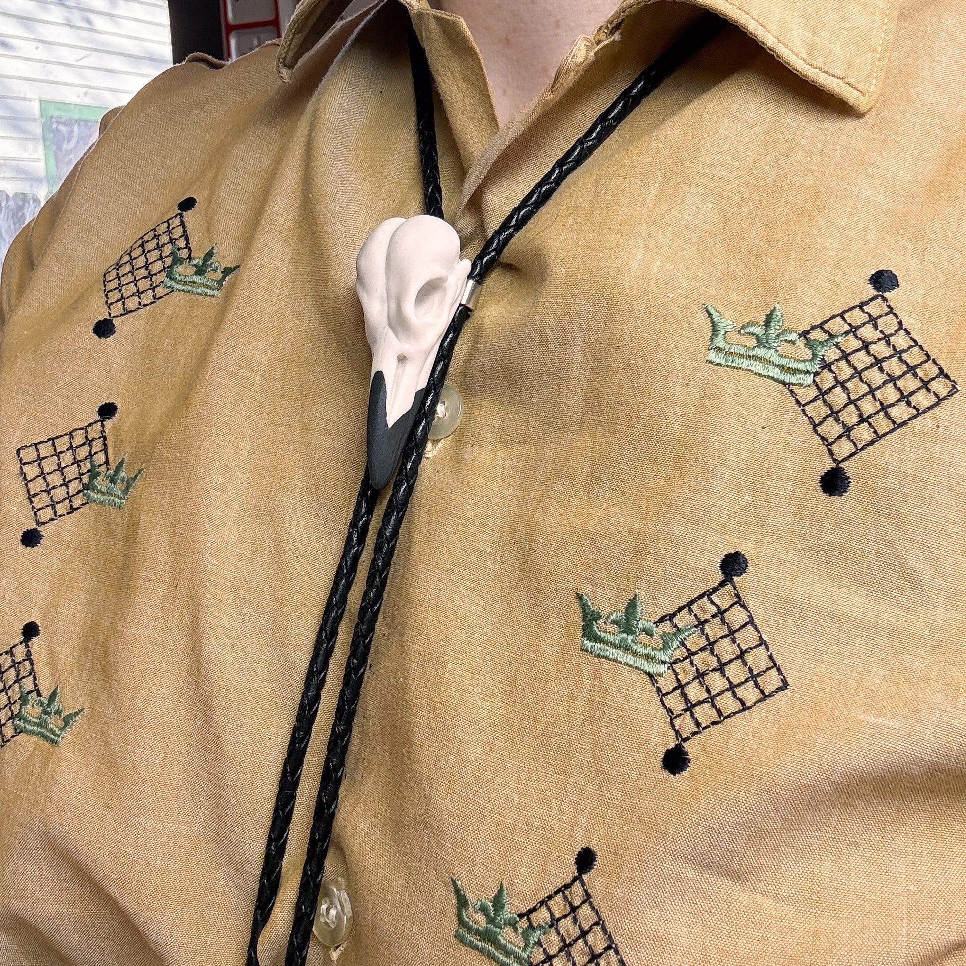 *porcelain* Northern Flicker Skull Bolo Tie
